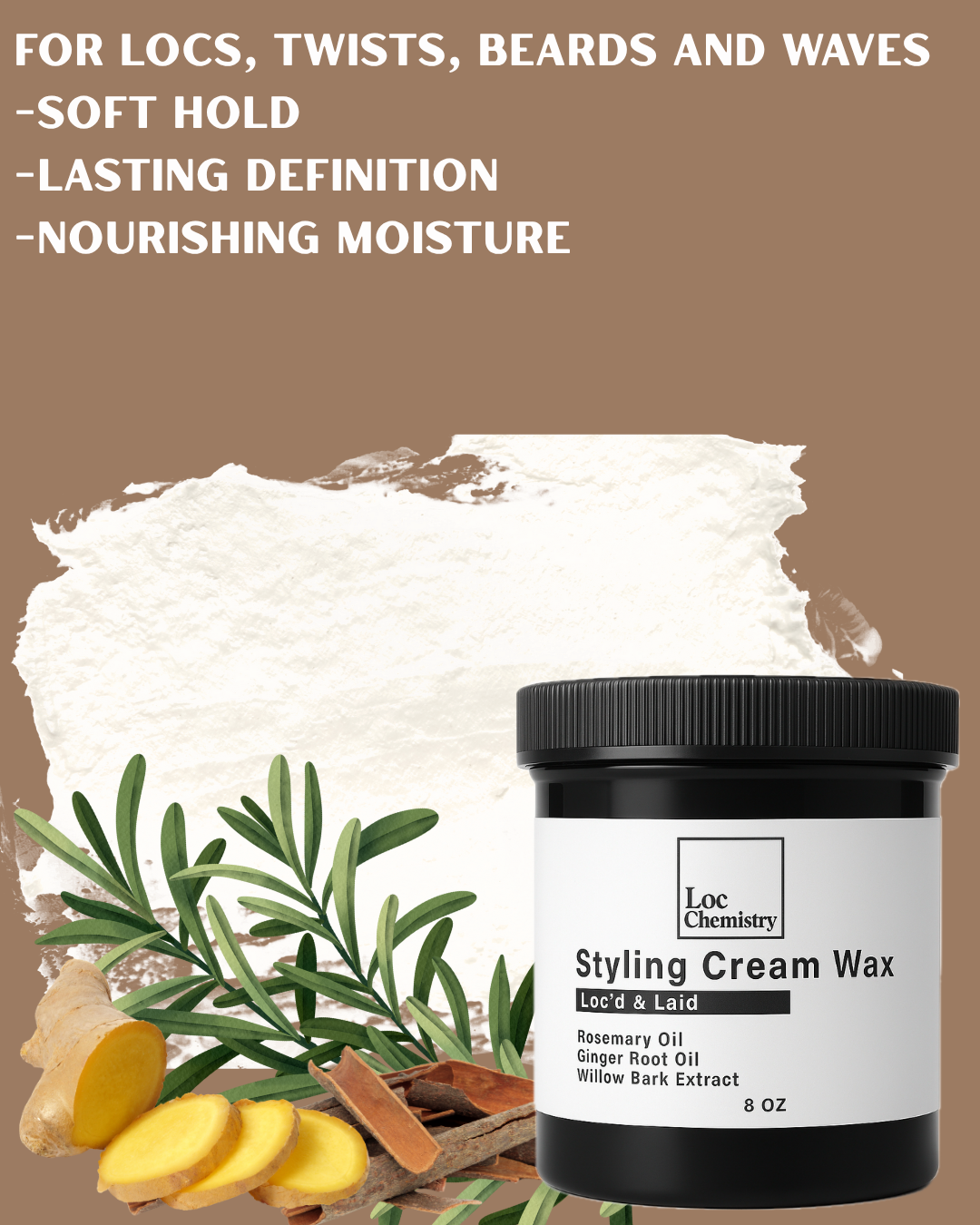 Apply a small amount of cream wax to damp locs or hair. Work it through evenly, concentrating on areas that need added hold or definition. Style as desired for a smooth, controlled finish.
